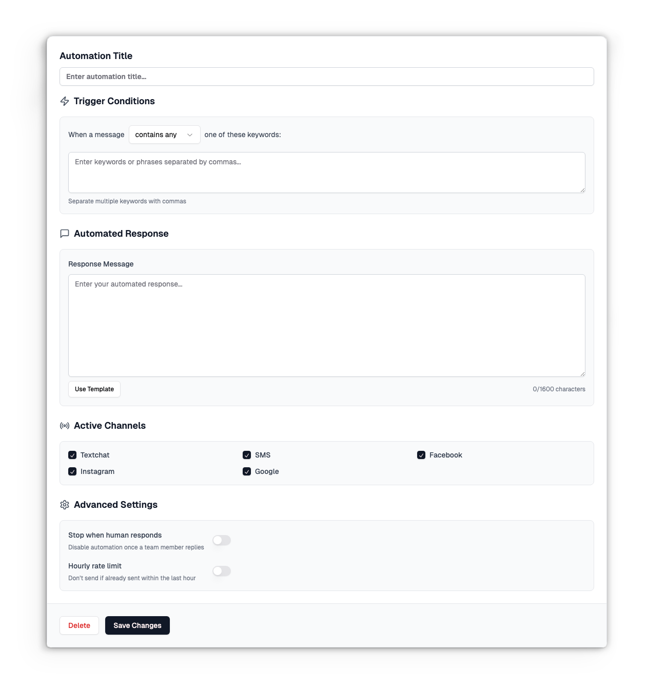 Smart Replies works by looking for specific words and phrases and sending a response based on parameters that you set. Create an automatic response for common questions that you get on a daily basis. Retrieve additional information from your customers so that you can provide the best customer service.