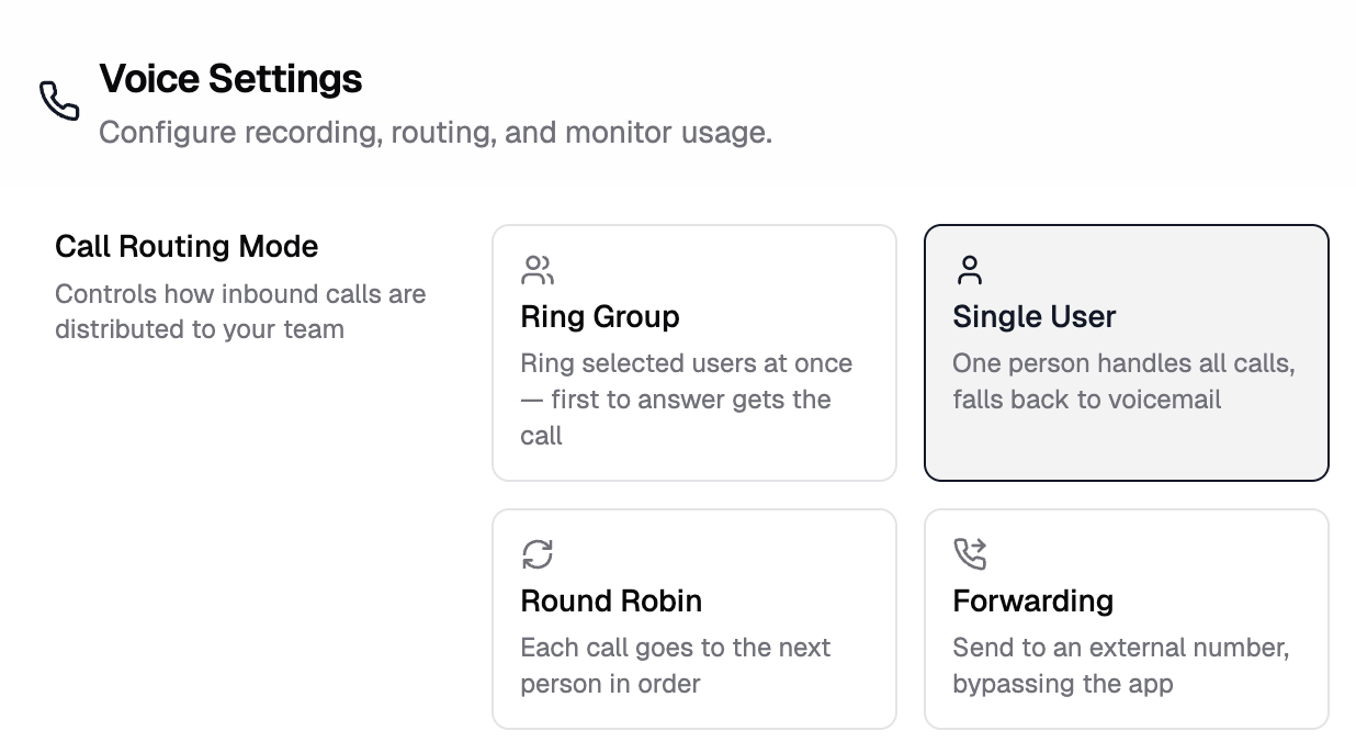 Incoming calls are routed based on your Voice settings and appear in real time.