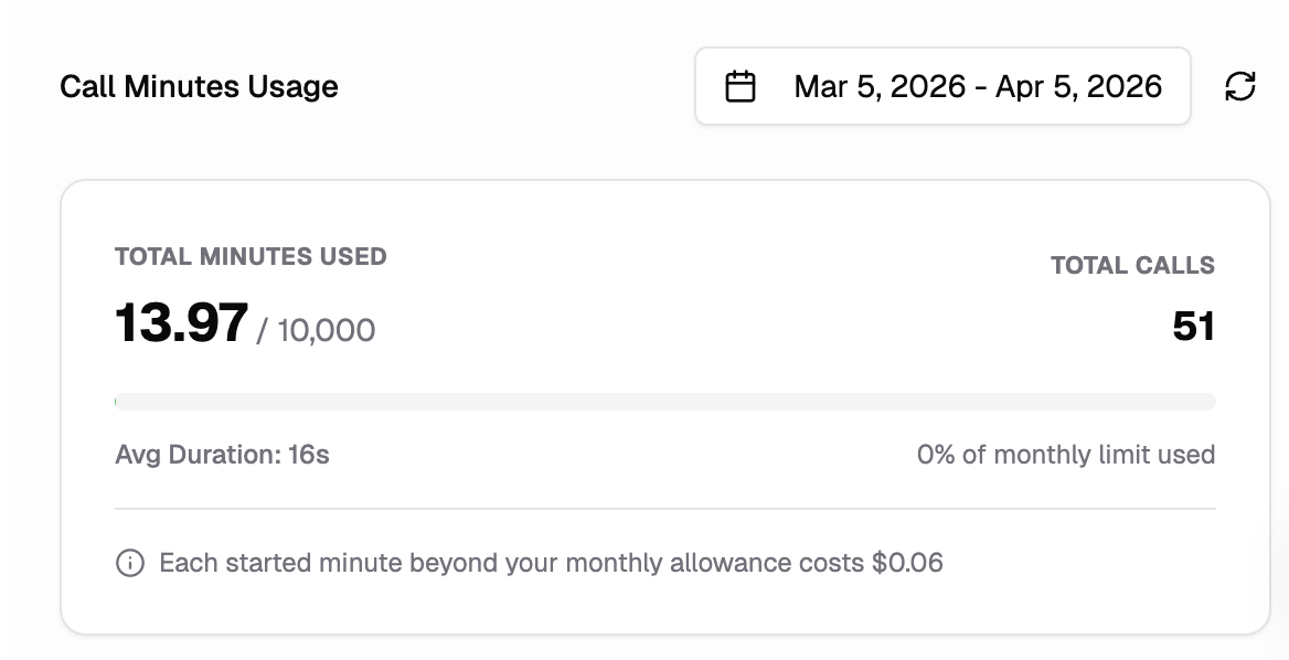 Track your monthly call usage and limits.