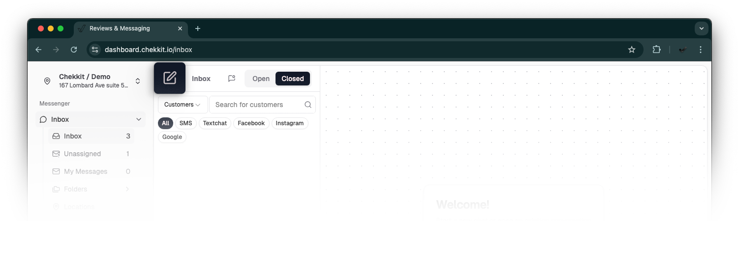 To send a new message, click the new message button on the top of the Messenger dashboard. You can also search for an existing conversation in your database.